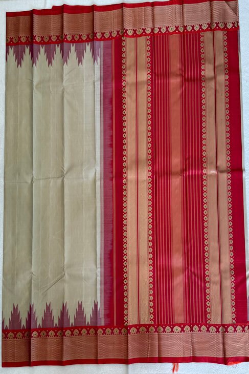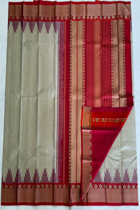 A Beige & Orange-Pink Thread Work Kanjeevaram