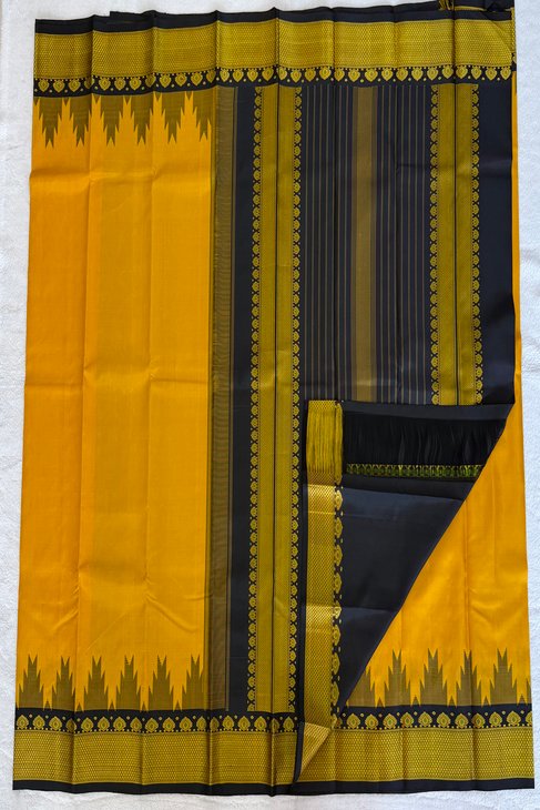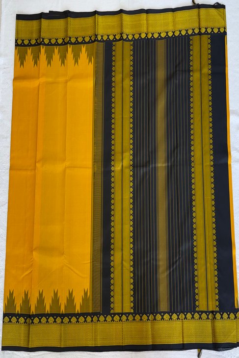 A Yellow & Black Thread Work Kanjeevaram