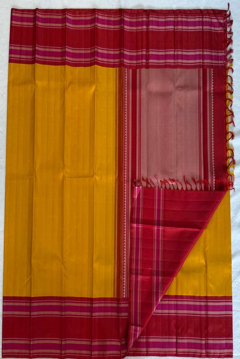 A Yellow & Red-Pink Thread Kanjeevaram